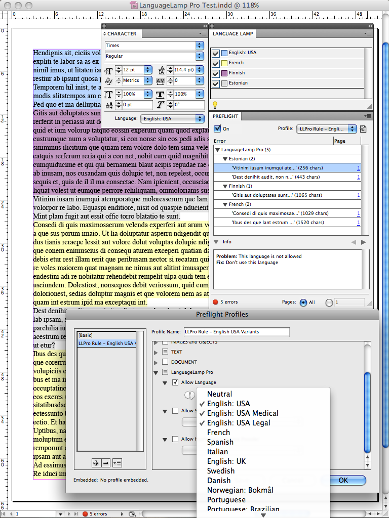 LanguageLamp text highlighting and LanguageLamp Pro Preflight Rules